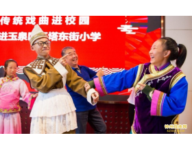 学生们练习二人台表演。 戏曲进校园文化润童心。 学生们近距离感受中国传统戏曲文化的魅力。 10月14日,呼和浩特市玉泉区五塔寺东街小学学生在戏曲演员的指导下,练习二人台表演。 当日,呼和浩特民族演艺集团二人台艺术研究剧院传统戏曲进校园活动在玉泉区五塔寺东街小学举
