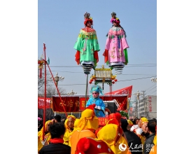 伴随着礼花声、乐曲声,数十名儿童浓妆艳抹装扮成的孙悟空、桃花扇等造型人物在三四米高空中或踩着刀锋、枪尖,或站在书本、塔顶之上,为众人表演美猴王降服白龙马、许状元拜塔救母等民间故事。2月22日,河南安阳水冶镇举行抬阁巡游闹元宵活动,引来数十万村民和游客驻足观