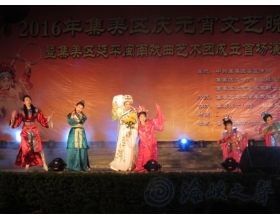 厦门市集美区延平闽南戏曲曲艺艺术团19日晚举行首次公演,浓郁的地方传统特色让观众在欢乐中零距离感受到闽南传统文化的魅力。 2016年厦门集美区庆元宵文艺晚会当晚在杏林文体中心广场热闹上演,歌仔戏、荷叶说唱、答嘴鼓一系列极具厦门特色的非物质文化遗产曲艺节目纷纷登