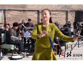 13岁的戏剧演员何雨朦为望都西张庄村群众清唱河北梆子《依然还我生前样》选段。 2月23日,河北保定市望都县十余支非遗戏曲文艺队为当地群众献上了精彩的河北梆子节目,让群众感受到了非物质文化遗产的魅力所在。 戏剧演员计俊平在为群众清唱河北梆子《杜十娘》选段。 据悉,