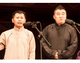 2016年4月16日下午14时30分,北京新国戏文创投资在大观园戏楼举办了本届新国戏艺术节重要的艺术活动之一 曲艺大观相声专场,本次受邀的嘉宾为着名相声演员何云伟、刘洪沂,中国广播说唱团中年相声表演艺术家,国家一级演员刘伟,青年相声演员闫佳宝、张骥、韩雪松、章绍伟、