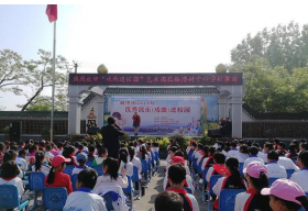 4月16日,桂阳县第八中学校园里锣鼓喧天,该县湘剧保护传承中心的演员们将一场传统戏曲的盛宴带进了校园。 当天,上千名学生和老师围坐在草坪上,湘剧《单下山》、戏曲清唱《昭君出塞》、湘剧折子戏《挡马》等一出出戏剧精品被搬进了校园,演员们演得卖力,学生和老师们看得