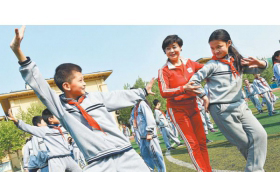 五音戏进校园再出“妙招” 淄博小学生课间做起戏曲广播操