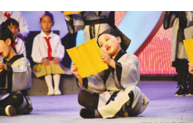 小学生诵读中华传统经典 人之初,性本善;性相近,习相远;苟不教,性乃迁5月16日,在甘肃省广播电影电视总台的舞台上,来自兰州市水挂庄小学的学生个个手拿竹简,跟着音乐的韵律晃动着小脑袋,用稚嫩的童声诵读着中华传统经典《三字经》,韵味十足的表现赢得观众阵阵热烈的