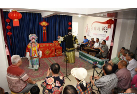 7月1日,在库尔勒市天山街道龙祥社区,祥韵秦腔艺术团成员正在为居民演唱秦腔《三对面》。 近年来,库尔勒市天山街道龙祥社区充分挖掘辖区文化资源,组建了以祥韵秦腔艺术团、最美夕阳舞蹈队为代表的文化团体,并免费为他们提供活动场地,打造全民参与、共建共享的活动平台