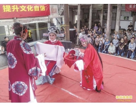 6月9日,由嵊州市老顽童志愿者服务队发起的文化进社区、进乡村、进学校三走进活动在嵊州市长乐镇大昆村举行。志愿者们在村文化礼堂表演了越剧《送风冠》《金玉良缘》等精彩折子戏,为山区戏迷送上了爱心越剧大餐。