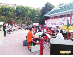 昨天下午,驻马店驿城区老街街道飞龙社区内热闹非凡,由驿城区文化和旅游局、驿城区老街街道办事处和驿城区文化馆组织的2019迎中秋文艺演出进社区活动火热举行。 金色艺术团的团员们为辖区居民演唱了戏曲。《朝阳沟》连唱,《包公案》、《白蛇传》、《智取威虎山》选段等,
