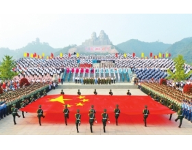 为纪念中国人民抗日战争暨世界反法西斯战争胜利70周年,“炎黄儿女在黄河岸边万人齐唱保卫黄河”活动在郑州黄河风景名胜区炎黄广场举行。郑州市领导、机关干部、企业职工、农民、军人、学生、抗战老兵、劳动模范、各行业先进人物等近4万名各界各族群众齐聚黄河岸边,在炎黄二