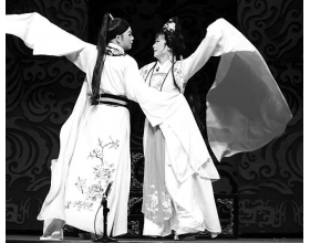 进京参加第四届少数民族戏剧展演的云南玉溪花灯戏《卓梅与阿罗》,改编自莎士比亚名剧《罗密欧与朱丽叶》。此剧中,这对著名的恋人改名为阿罗与卓梅,落户彝族山寨,身着古老的彝装,在芦笙伴奏中跳着跌脚舞,用花灯调倾诉互相爱慕之情。在炽热的火把节里,沐浴着自由恋爱的