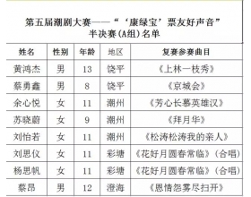 第五届潮剧大赛——“‘康绿宝’票友好声音”半决赛名单新鲜出炉