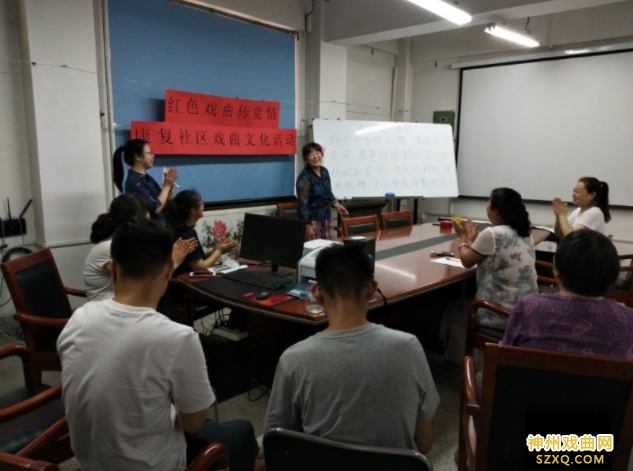 戏曲艺术传唱,“传”的不仅是唱腔、曲目,更是对优秀文化的传承。6月21日,京剧社宋海银老师、戏曲艺术家张红茹老师的“红色戏曲传党情”戏曲课堂分别在名门世家社区和康复社区开讲。